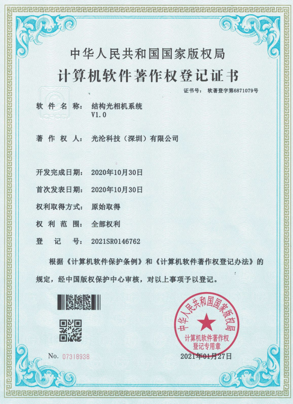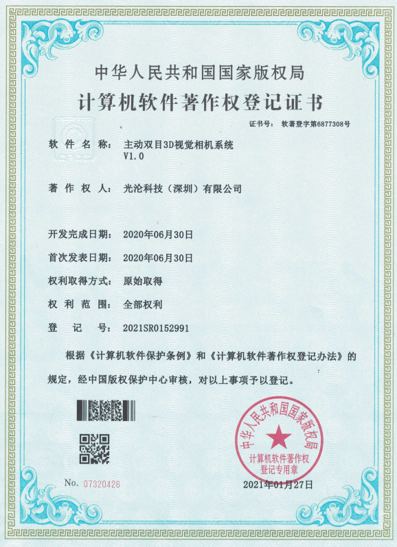 光淪科技工業(yè)機器人視覺相機獲得了多項國家專利及軟件著作權(quán),公司自成立以來一直堅持自主知識產(chǎn)權(quán)研發(fā)工業(yè)3D相機!